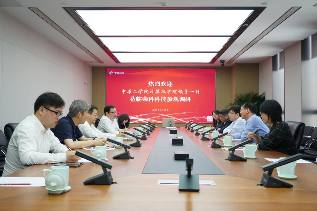 为加强我院与业界专精特新企业在科技创新、人才培养、技术交流、成果转化、实习实训、就业招聘等方面的对接, 2023年5月31日上午,计算机学院党委书记吕继东、院长张书钦、副院长杨关、副院长王佩雪、副书记侯向花一行5人前往郑州市中原数字产业园荣科科技股份有限公司进行校企合作专题调研交流。