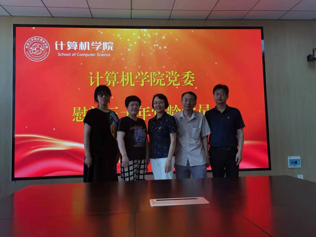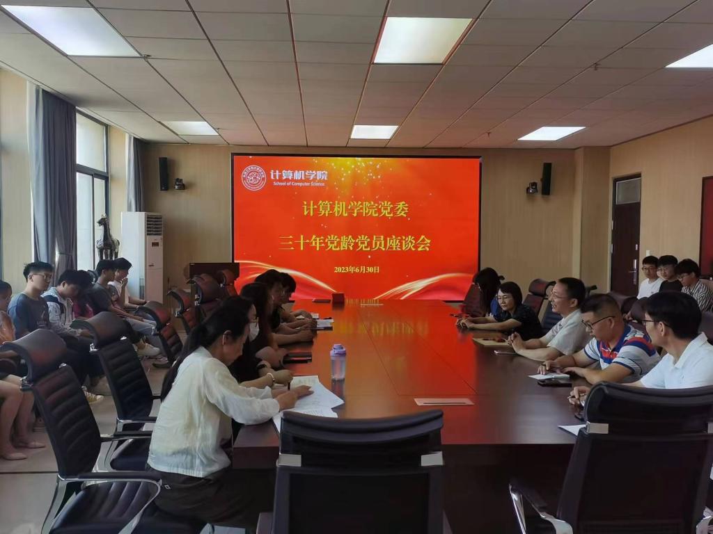 6月30日上午, 计算机学院党委隆重举行庆祝中国共产党成立102周年暨“七一”表彰、老党员慰问座谈会,活动由学院党委副书记侯向花主持,教师党员代表、学生党员代表近三十人参会,活动在计算机学院A1116会议室进行。