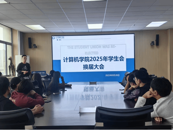 为进一步加强学生组织建设,提升学生自我管理与服务能力,计算机学院于2025年9月28日下午在三号组团楼A1116教室召开了团委学生会换届大会。学院团委副书记王腾老师及新老届次学生会成员共同出席本次大会。