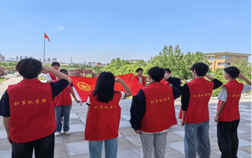 2025年4月29日,计算机学院团委组织部分团员青年进行入团誓词宣誓。团员们身着统一红色志愿服,在国旗下,面对鲜艳的团旗,举起右拳,重温入团誓词。一句句铿锵有力的誓词,让团员们重新感悟入团时的庄严承诺,坚定了为共产主义事业而奋斗的理想信念。