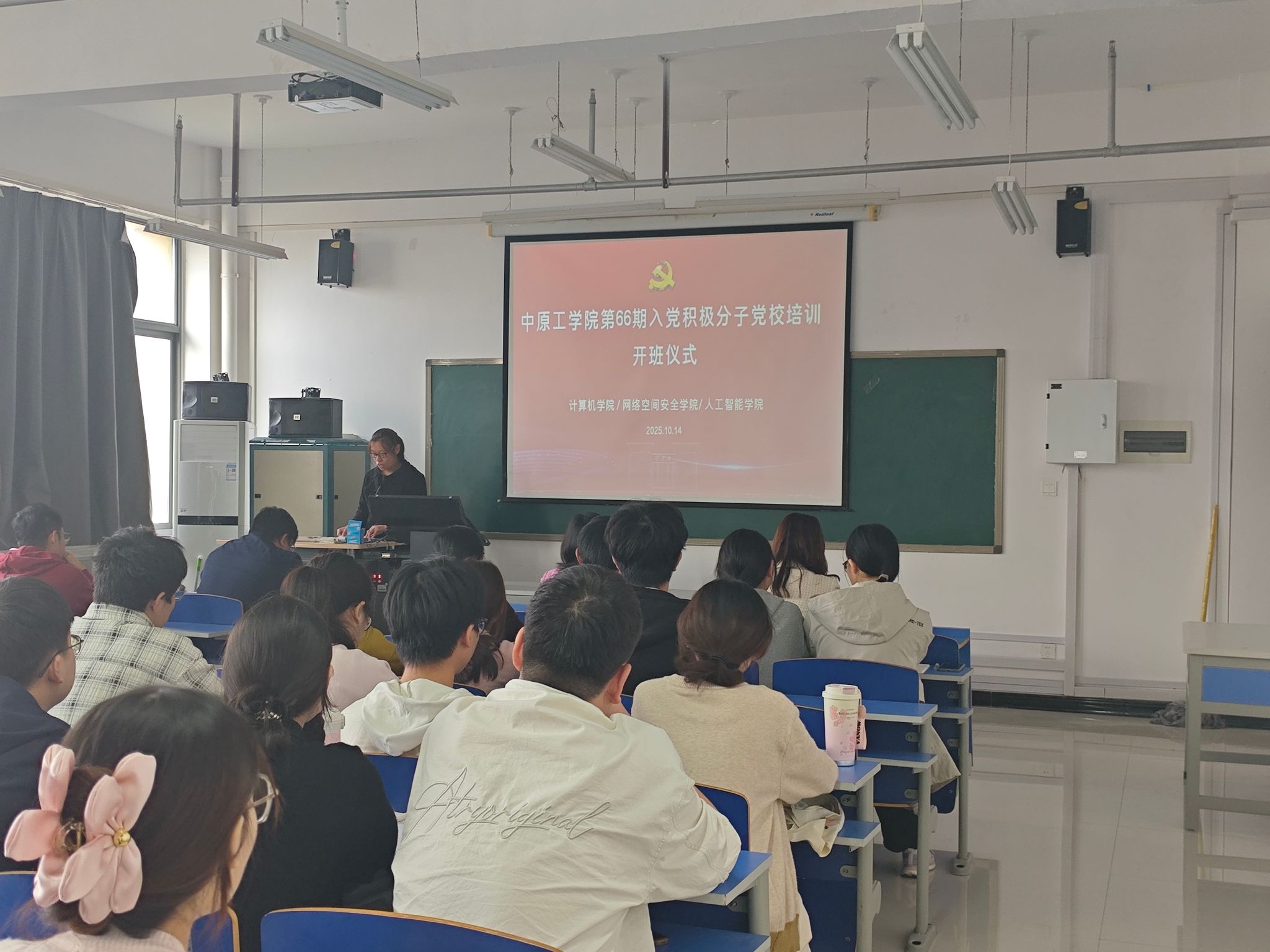 2025年10月14日下午,计算机学院、网络空间安全学院与人工智能学院联合举办的第66期入党积极分子党课培训班开班仪式在三号组团A908教室隆重举行。计算机学院党委书记苗凤君、网络空间安全学院党总支副书记邢颖、人工智能学院直属党支部副书记张志鹏,计算机学院党委副书记侯向花出席本次活动,相关学院各学生党支部书记及第66期全体学员参加活动。开班仪式由计算机学院党委副书记侯向花主持。